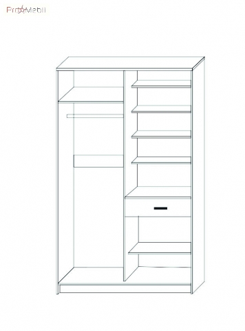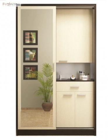 цілісна конструкція, трьохсегментна, представлена великою високою шафою, тумбочкою і закритою шафою |