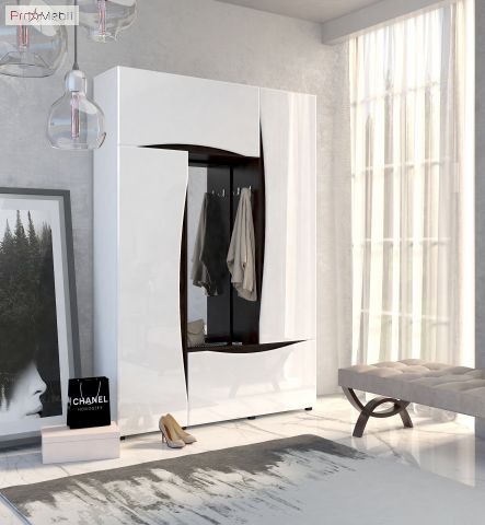 Передпокій Амулет Майстер Форм - це оригінальні меблі від української меблевої фабрики Майстер Форм для облаштування передпокою. Стінка випускається в цікавому поєднанні білий глянець / венге магія. Корпус виготовлений з якісного ламінованого ДСП. Фасади виготовлений з якісного МДФ. Передпокій Амулет продається цільної конструкцією і складається з наступних елементів: шафа, тумба для взуття, закриті відділення і дзеркало. Меблі характеризується простими прямокутними формами, контрастними вставками, відсутністю ручок, їх роль виконують фрезеровані на фасаді виїмки, регульованими опорами і газовими амортизаторами. Передпокій Амулет білий глянець Майстер Форм - стильні і функціональні меблі за доступною ціною. Купити меблі Амулет Майстер Форм можна в нашому інтернет-магазині ProMebli.ua з доставкою по всій Україні. Оплата за готівковий і безготівковий розрахунок, в кредит і розстрочку.