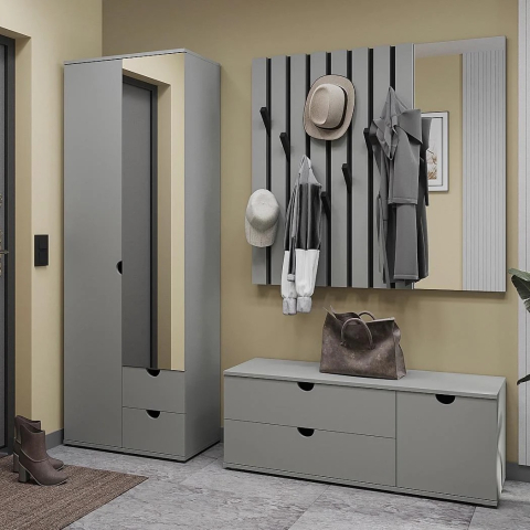 Передпокій Ельба Сокме - приваблива колекція, яка ідеально підходить для створення спокійної і вишуканої атмосфери в передпокої. Корпус і фасадні частини виготовляються з якісного ламінованого ДСП товщиною 16 мм, у витонченому відтінку шиншила сіра, який наповнює простір м'якістю, світлом і сучасним шармом. Всі торцеві поверхні елементів акуратно облицьовані ПВХ-кромкою товщиною 0,6 мм, що надає меблям естетичну завершеність і акуратний зовнішній вигляд. Колекція захоплює: лаконічними, але виразними формами; плавними лініями і м'якими пропорціями; гармонійним однотонним сірим оформленням, що створює відчуття затишку і цілісності; відсутністю звичних ручок, їх замінюють округлі фрезеровані вирізи, що додають дизайнерську легкість; стійкими опорами, що створюють відчуття надійності і візуального балансу; продуманою фурнітурою, яка робить використання меблів по-справжньому комфортним. Модульний передпокій об'єднує ретельно продумані елементи, створюючи гармонійний і функціональний простір: містка шафа допомагає підтримувати порядок в одязі; вішалка забезпечує зручне розміщення верхнього одягу і головних уборів; тумба для взуття надає зоні біля входу акуратність і легкість; а дзеркало, відбиваючи світло, візуально розкриває простір і додає фінальний штрих витонченості. Всі елементи колекції витримані в єдиному дизайнерському стилі і можуть бути легко скомбіновані в залежності від ваших уподобань і особливостей приміщення. Ельба Сокме стане стильним і функціональним доповненням вашого передпокою, створюючи гармонійний, затишний і збалансований простір, де кожен день починається з відчуття порядку і спокою. Купити меблі в передпокій Ельба Сокме можна в нашому інтернет-магазині ProMebli.ua з доставкою по всій Україні. Оплата за готівковий і безготівковий розрахунок, в кредит і розстрочку.