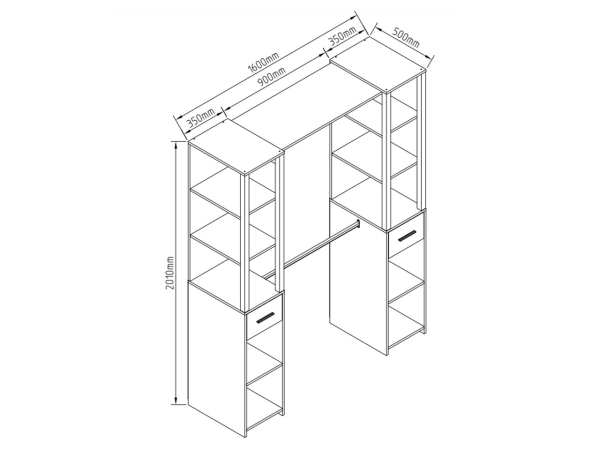 передпокій продається комплектом і складається з: двох відкритих секцій з висувними шухлядами і штангами для підвішування одягу |