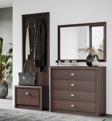 Передпокій Коен Gerbor - це класика в сучасному виконанні від української фабрики Gerbor холдинг, призначені для облаштування стильного передпокою. Корпус виготовлено з якісного ламінованого ДСП, фасадні частини - з якісного ламінованого ДСП з декоративними планками по периметру з МДФ в ефектному кольоровому виконанні «венге магія» з виразною текстурою. Колекція характеризується сучасним стилем і вишуканим виконанням; масивними формами; насиченим відтінком; елегантними квадратними ручками з орнаментом; фірмовими комплектуючими: петлями й телескопічними направляючими повного висування, гарантуючи надійність і довговічність виробам. Передпокій складається з місткої тумби для взуття, дзеркала, навісного вішака та комода. Меблі Коен Gerbor створять інтер'єр Вашої мрії - функціональний і такий, що привертає увагу. Купити модульні меблі Коен Gerbor можна в нашому інтернет-магазині ProMebli.ua з доставкою по всій Україні. Оплата за готівковий і безготівковий розрахунок у кредит, розстрочку або оплату частинами ПриватБанк.
