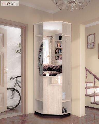 Передпокій Корнелія Майстер Форм - ідеальний і багатофункціональний варіант для невеликого передпокою. Передпокій Корнелія продається цільної конструкцією і складається з наступних елементів: дзеркала, полицями під дзеркалом для дрібних речей, вішаки та гачків для одягу, полиці для головних уборів і полиць внизу для взуття, які разом створюють унікальний меблевий гарнітур для передпокою. Корпус і фасади виготовляються з ламінованої ДСП. Гарнітур для перепокою Корнелія Майстер Форм випускається в цікавому кольорі «дуб молочний». Головною особливістю колекції Корнелія є - кутовий дизайн, елегантні низькі регульовані ніжки. Всі елементи продумані до дрібниць дозволяють формувати унікальний меблевий комплект, який ідеально підійде для Вашого передпокою.
