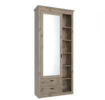 Передпокій Санремо Сокме - колекція, в якій втілилися затишок, природна гармонія і легкий шарм заміського стилю - все, що створює в будинку атмосферу тепла і спокою, де кожна деталь продумана для комфорту і затишку на довгі роки. Корпус виконаний з якісного ламінованого ДСП товщиною 16 мм, фасади з ламінованого ДСП товщиною 16 мм з декоративними елементами МДФ і ХДФ, в природній текстурі необробленого дерева дуб вікінг з м'якими прожилками, благородними сучками, природними відтінковими переходами. Торцеві поверхні всіх внутрішніх і зовнішніх елементів виробів облицьовані кромкою ПВХ товщиною 0,6 мм, надаючи меблям завершений красивий і доглянутий вигляд. Меблі вирізняються спокійним дизайном і продуманим виконанням: фактура натурального дуба створює відчуття тепла, прямі лінії - порядок і лаконічність, декоративні карнизи надають композиції виразності та завершеності, контрастні чорні ручки додають сучасну ноту, міцна основа забезпечує максимальну стійкість, а якісні комплектуючі - телескопічні напрямні та надійні петлі Hafele - гарантують плавність і легкість використання. Передпокій включає в себе різні модулі: комод для зберігання одягу і дрібних речей; навісну вішалку з полицею для зручного розміщення верхнього одягу і аксесуарів; тумбу для взуття для акуратного порядку біля входу; шафу з дзеркалом для функціонального і візуально легкого рішення зберігання і навісне дзеркало для відображення і візуального збільшення простору. Всі елементи можна вільно комбінувати між собою, створюючи індивідуальний простір, який буде відображати ваш стиль і звички. З Санремо Сокме передпокій перетворюється на затишний, світлий простір, куди приємно повертатися - де кожен день вас зустрічають тепло і гармонія. Купити меблі в передпокій Санремо Сокме можна в нашому інтернет-магазині ProMebli.ua з доставкою по всій Україні. Оплата за готівковий і безготівковий розрахунок, в кредит і розстрочку.