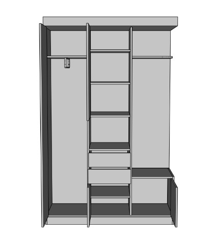 - шафа для верхнього одягу - закрита секція з поперечиною для вішалок, ідеальне місце для зберігання пальто, курток та іншого верхнього одягу;