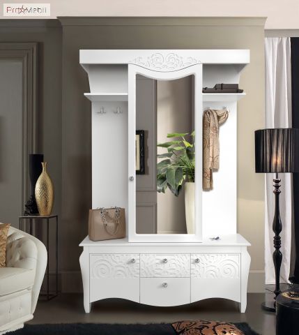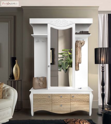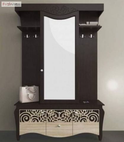 Передпокій Гефест Майстер Форм strong> - розкішна з особливим шармом краси і розкоші від українського виробника Майстер Форм для облаштування інтер'єру передпокою. Передпокій Гефест Майстер Форм продається цільної конструкцією, яку не можна розкомплектувати і складається з наступних елементів: шафа з дзеркальними дверцятами, з боків розташовані відкриті вішаки з гачками і з полицями для головних уборів, внизу розташувалася тумба для взуття з двома закритими відділеннями для взуття і двома висувними шухлядами для дрібниць. Корпус виготовляється з високоякісної ДСП, фасади з МДФ. Гарнітур Гефест Майстер Форм виконана в трьох колірних рішеннях: "венге / дуб Сонома патина", "білий / дуб Сонома" і "білий", які зачарує вас своїми унікальними поєднаннями і безсумнівно створять виразний ефект. Родзинкою колекції Гефест Майстер Форм є - хвилясті форми; цікаве поєднання; фасади з об'ємною фрезеруванням; металеві мініатюрні вишукані ручки кольору бронза і хром; фігурні ніжки; фірмові петлі забезпечують м'яке і безшумне закриття дверей, висувні шухляди обладнані телескопічними напрямними. Меблі Гефест Майстер Форм вигідно вписується в будь-який інтер'єр і здатна стати родзинкою вашого будинку.