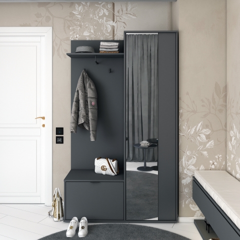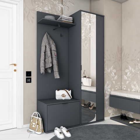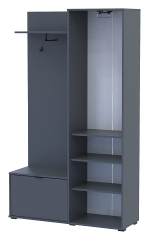 Компактний та сучасний передпокій Дора Doros представлений цільною конструкцією складається з 1 елемента, який включає шафу з висувною штангою для вішалок, тумбу для взуття і вішалки з гачками та з полицею для головних уборів. Меблі Дора Doros зроблять передпокій по-справжньому функціональним і стильним.