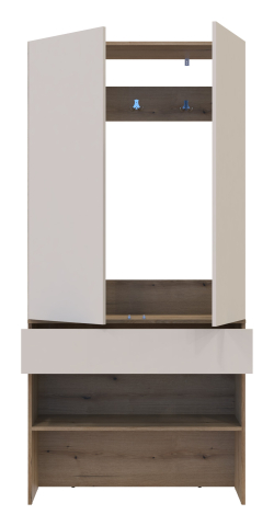 Передпокій Спліт Doros - втілення гармонії та функціональності. Його цілісна конструкція об'єднує шафу зі зручними гачками для одягу, висувну шухляду для зберігання дрібниць і просторі відкриті полиці для взуття, які забезпечать порядок з першого кроку в дім. Передпокій створить затишок і порядок, перетворивши вхідну зону на організований і стильний простір. Він ідеально підходить для тих, хто цінує практичність без шкоди для естетики. З таким набором меблів ваші речі завжди будуть на своїх місцях, а взуття акуратно розставлене, що надає відчуття спокою і затишку відразу з порога.