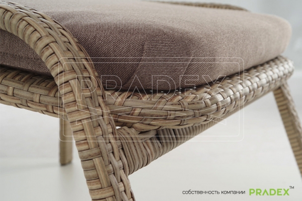 Пуф-підставка Лейзі Pradex – це елегантна розкіш, продумана до дрібниць ергономічність, ажурне плетіння та практичність. Зручне крісло створить розслаблену атмосферу, тому підійдуть для улюблених та затишних кальян-барів, пляжних кафе, заміських клубів та СПА-центрів. Пуф додатково комплектується подушкою на сидіння товщиною 5 см у стандартній комплектації з тентової тканини з вологовідштовхувальним просоченням Oxford, з можливістю виготовлення у всіляких кольорах і текстурах тканин на вибір - жаккард, велюр, дралон. Легкий каркас із алюмінію, якому не страшна волога, а також запатентована формула штучного ротанга – робить ці вироби популярними та затребуваними. Меблі Лейзі Pradex виконані в кольорі мигдаль, з можливістю виконання в різноманітних колірних рішеннях з різними типами плетіннями - A8, F01. Колекція Лейзі Pradex де б вона не оселилася, викликатиме асоціації з безтурботним життям, сонцем та романтикою далеких країн.