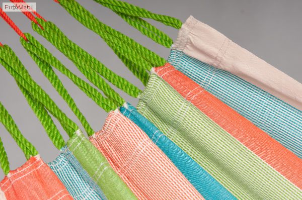 Великолепный погодостойкий большой семейный подвесной гамак Domingo coral имеет много места и предназначен для летнего отдыха. Гамак изготовлен в Колумбии из погодостойкого материала HamacTex. Большое количество шнуров для подвешивания оптимально распределяют вес вашего тела в гамаке и гарантируют удобный отдых и долговечность гамака. Особо прочные плетёные канаты обеспечивают дополнительную надёжность.