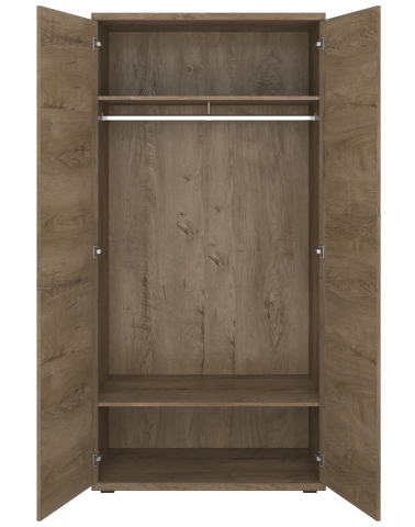 шафа містить одне закрите відділення за двома дверима та з двома полицями та штангою для вішалок усередині |