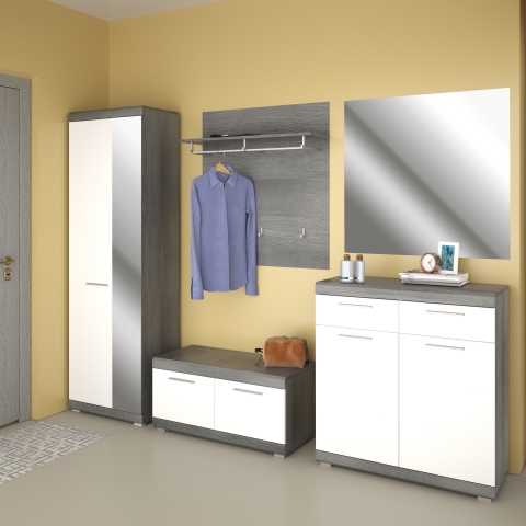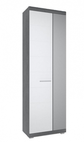 Шафа 2Д Флорес Сокме перетворить інтер'єр та збереже вишуканий стиль передпокою. Шафа містить висувну штангу для одягу та полицю. Колекція привертає увагу: стильним та вишуканим дизайном; неймовірною комбінацією кольорів: приголомшливі білі глянцеві фасади з димчастим відтінком корпусу сосна фігурна; довгастими ручками, сталевого кольору; пластиковими стійкими ніжками; фірмовими комплектуючими: петлями Hafele, забезпечуючи максимальну зручність у використанні. Меблі Флорес Сокме ідеально підходить для організації простору, створюючи відчуття організованості та гармонії.