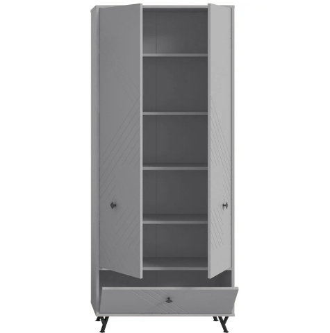 Шафа 3Д Камео Сокме справжній шедевр витонченого стилю і елегантності, зразок інноваційних і ексклюзивних меблів, ідеально підходить для створення спокійної і вишуканої атмосфери в передпокої. Трьохдверна шафа включає два відділення: за розпашними дверцятами розташований основний простір з п'ятьма полицями, а додаткове відділення оснащене відкидними дверцятами. Шафа захоплює своїм унікальним дизайном: геометричним фрезерованим малюнком фасадів, що створює ефект глибини і тактильної виразності; приглушено-сірим тоном шиншила сіра, що наповнює простір спокоєм і благородством; темними металевими ручками-кнопками, що додають індустріальний шарм і підкреслюють сучасний характер меблів; темними металевими Y-подібними ніжками, що надають композиції візуальну легкість, зберігаючи при цьому надійність і стійкість конструкції, фірмовою фурнітурою. Камео шиншила сіра Сокме - справжній витвір мистецтва, що створює простір, де кожна деталь надихає, а комфорт перетворюється на естетичне задоволення.