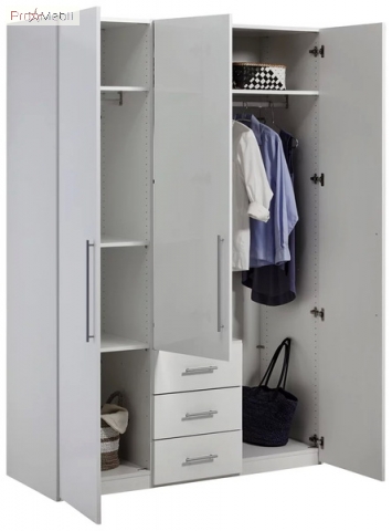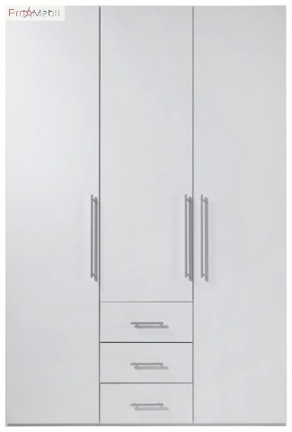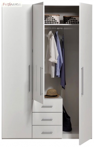 Тридверна шафа Магнум Embawood забезпечить безпеку та порядок Вашого гардеробу. Шафа має три відділення: одинарну секцію з поличками, подвійну секцію зі штангою для вішаків та полицею, та відділення з трьома висувними шухлядами. Корпус та фасадні частини виготовлені з якісного ламінованого ДСП, у поєднанні "білого корпусу" з "білими глянсовими" фасадами. Шафа привертає увагу вишуканістю та мінімалістичністю; довгастими ручками сріблястого кольору; міцною основою, що сприяє максимальній стійкості; фірмовими комплектуючими: завіси та телескопічні напрямні забезпечують максимальний комфорт у використанні. Шафа 3Д Магнум Embawood порадує якістю виконання, універсальністю та привнесе в будь-який інтер'єр ергономічність та елегантність.