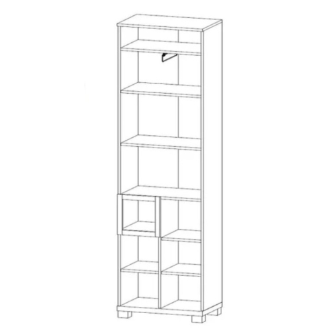 шафа містить відділення з рядом зручних містких полиць, відділення зі штангою для вішалок, а також додаткове відділення з полицями і відкриту нішу |