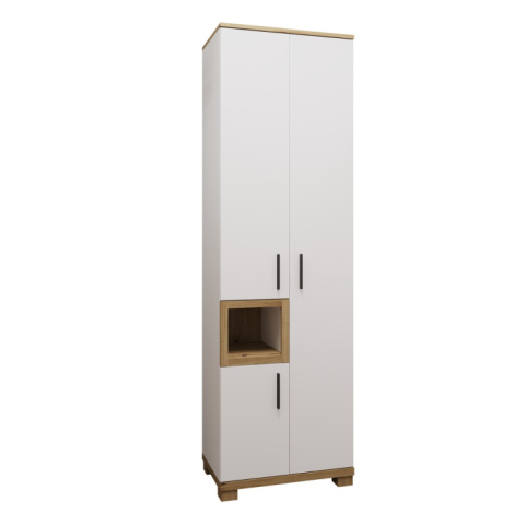 Шафа 3Д Монте Сокме - світлий і виразний акцент для тих, хто хоче перетворити простір біля входу в елегантне і гармонійне місце, де порядок, світло і природна гармонія зустрічають вас з перших кроків. Шафа містить відділення з рядом зручних містких полиць для зберігання речей, відділення зі штангою для вішалок, де можна розмістити одяг на плічках, а також додаткове відділення з полицями і відкриту нішу, яка ідеально підходить для декоративних елементів або аксесуарів, які хочеться тримати на виду. Меблі вражають естетично вивіреним стилем: лаконічні лінії і прості форми створюють відчуття порядку і архітектурної легкості; білосніжна основа в поєднанні з деревними акцентами дуба артізан додає тепла, затишку і природного шарму; довгасті ручки вносять нотку вишуканості і підкреслюють сучасну динаміку; стійкі масивні опори надають конструкції ґрунтовності і візуального балансу; а якісна фурнітура гарантує плавне, безшумне використання. Монте Сокме перетворює передпокій в простір тепла, стилю і комфорту, де кожна деталь продумана і наповнена природною гармонією.