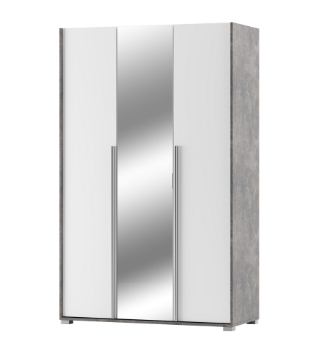 Трьохдверна містка шафа Алекса Світ Меблів гармонійно впишеться в інтер'єр спальні і стане корисним функціональним предметом меблів, що дозволяє розмістити необхідні речі. Шафа включає в себе два відділення: відділення з рядом зручних містких полиць і відділення зі штангою для вішаків і полицею антресоллю. Корпус і фасади меблів виготовлені з високоякісного ламінованого ДСП товщиною 16 мм, поєднуючи елегантний білий відтінок «німфея альба» з вишуканим індустріальним кольором «ательє світлий», такий тандем дарує відчуття простору та свіжості, роблячи інтер'єр світлим, стильним та комфортним. Фасад прикрашає дзеркало в повний зріст. Колекція Алекса Світ Меблів відрізняється максимальною лаконічністю і простотою, стане унікальним доповненням в інтер'єрі не втрачаючи своєї актуальності з часом.