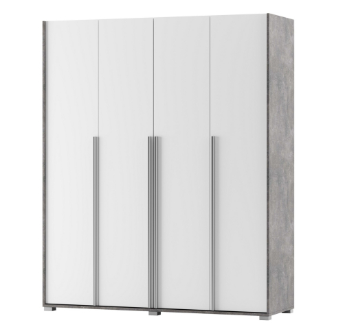Чотиридверна містка шафа Алекса Світ Меблів гармонійно впишеться в інтер'єр спальні і стане корисним функціональним предметом меблів, що дозволяє розмістити необхідні речі. Шафа включає в себе три відділення: два відділення з рядом зручних містких полиць і відділення зі штангою для вішаків і полицею антресоллю. Корпус і фасади меблів виготовлені з високоякісного ламінованого ДСП товщиною 16 мм, поєднуючи елегантний білий відтінок «німфея альба» з вишуканим індустріальним кольором «ательє світлий», такий тандем дарує відчуття простору та свіжості, роблячи інтер'єр світлим, стильним та комфортним. Колекція Алекса Світ Меблів відрізняється максимальною лаконічністю і простотою, стане унікальним доповненням в інтер'єрі не втрачаючи своєї актуальності з часом.