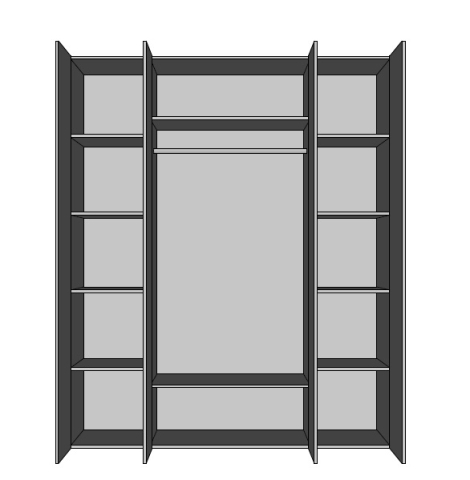 шафа містить три відділення: два відділення з низкою зручних містких полиць, відділення зі штангою для вішалок і полицею антресоллю |