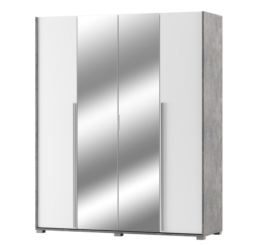 Чотиридверна містка шафа Алекса Світ Меблів гармонійно впишеться в інтер'єр спальні і стане корисним функціональним предметом меблів, що дозволяє розмістити необхідні речі. Шафа включає в себе три відділення: два відділення з рядом зручних містких полиць і відділення зі штангою для вішаків і полицею антресоллю. Корпус і фасади меблів виготовлені з високоякісного ламінованого ДСП товщиною 16 мм, поєднуючи елегантний білий відтінок «німфея альба» з вишуканим індустріальним кольором «ательє світлий», такий тандем дарує відчуття простору та свіжості, роблячи інтер'єр світлим, стильним та комфортним. Фасад прикрашають дзеркала в повний зріст. Колекція Алекса Світ Меблів відрізняється максимальною лаконічністю і простотою, стане унікальним доповненням в інтер'єрі не втрачаючи своєї актуальності з часом.
