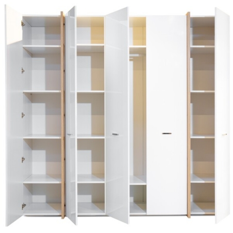 Шафа 5Д Альба Embawood - функціональний предмет меблів, що дозволяє розмістити необхідні речі, який гармонійно впишеться в інтер'єр вітальні, спальні та передпокою. Шафа включає в себе три відділення з полицями та відділення зі штангою та полицею антресоллю, які дозволять вам ідеально розмістити Ваші речі, щоб ви могли легко знайти все і зберегти ідеальний порядок. Корпус та фасади виготовляються з якісного ламінованого ДСП завтовшки 16 мм у поєднанні кольорів білий / дуб санремо, таке поєднання відтінків зроблять його ідеальним для сучасних концепцій інтер'єру. Шафа 5Д Альба Embawood чудово гармонує в сучасному дизайні, завдяки чому шафа відмінно впишуться у більшість сучасних інтер'єрів і наповнить квартиру шармом та натхненням.