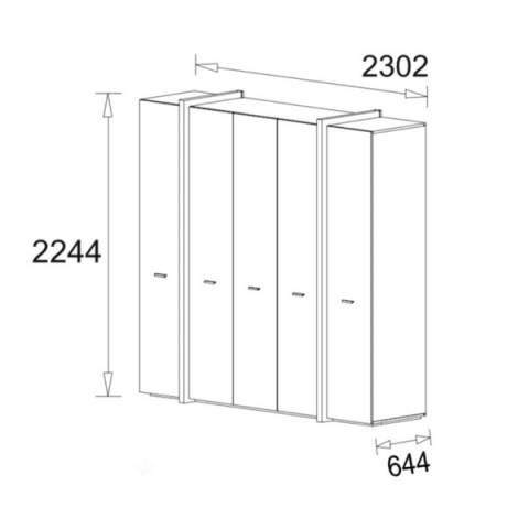 шафа містить три відділення з полицями та відділення зі штангою та полицею антресоллю |