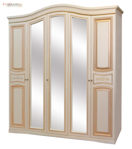 Елегантна шафа 5Д Ніколь Світ Меблів у класичному стилі, для створення затишної та гармонійної атмосфери в спальні. Шафа містить три відділення: в центральній частині одинарне відділення з низкою зручних містких полиць, з боків подвійні відділення зі штангою для вішалок і полицею антресоллю. Такий продуманий внутрішній простір дає змогу зручно зберігати як складені речі, так і одяг на плічках, забезпечуючи порядок і комфорт у використанні. Меблі привертають увагу класичним дизайном, різьбленим орнаментом і декоративним малюнком, нанесеним методом художнього друку, що створює ефект об'ємного декору, округлими елегантними карнизами, витонченими ручками округлої форми, що доповнюють загальний дизайн, надають меблям аристократичного та вишуканого вигляду, фірмовими комплектувальниками, що роблять експлуатацію зручною та надійною. Модульна спальня Ніколь Світ Меблів стане прекрасним вибором для оформлення спальні мрії.