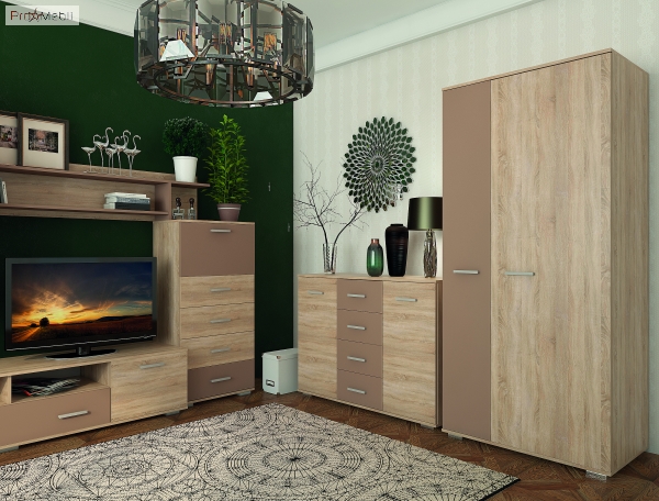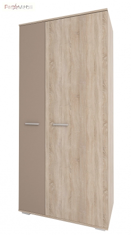 Дводверна шафа 900 Ріо Сокме вдало поєднує в собі функціональність і модний стильний дизайн і призначена для облаштування вишуканої вітальні, спальні, дитячої кімнати, робочого кабінету і передпокою. Шафа має одне закрите відділення, всередині знаходиться полиця і штанга для вішаків. Шафа з легкістю забезпечить збереження і порядок Вашого гардеробу. Для зручності шафа може бути як правосторонньою, так і лівосторонньою. Корпус і фасадні частини виготовлені з якісного ламінованого ДСП товщиною 16 мм, в м'якому поєднанні кольорів дуб сонома і лате. Торцеві поверхні всіх внутрішніх і зовнішніх елементів виробів облицьовані крайкою ABS товщиною 0,5 мм, надаючи меблям завершений гарний і доглянутий вигляд. Шафа привертає увагу елегантним мінімалістичним стилем; комбінацією темних і світлих деревних відтінків з оригінальною фактурою; прямими чіткими лініями; довгастими пластиковими ручками; пластиковими ніжками; фірмовими комплектуючими: телескопічними напрямними і завісами без дотягу, які забезпечують максимальний комфорт у використанні. Меблі Ріо Сокме створять ефект легкості і підкреслять неповторний характер Вашої вітальні.