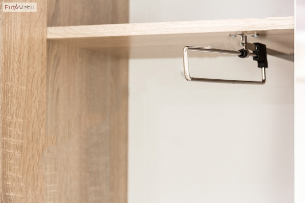 Шафа Лора ВМВ лаконічна з мінімальним дизайном, призначена для облаштування вишуканого передпокою. Шафа включає дві полиці і висувну штангу для вішалок. Шафа з легкістю забезпечить безпеку та порядок Вашого гардеробу. Корпус та фасадні частини виготовляються з високоякісного ламінованого ДСП у ефектному поєднанні гладкого чорного кольору та природного відтінку дуб сонома з виразною фактурою. Меблі Lora VMV прикрасять Ваш будинок стильними, функціональними та якісними елементами, які додадуть інтер'єру затишну та комфортну атмосферу.