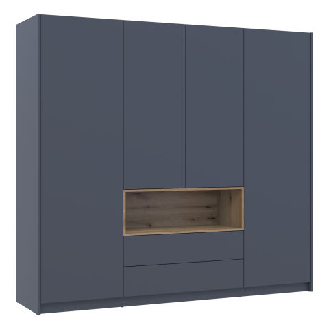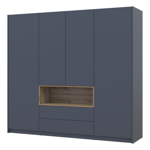 Ергономічна та інноваційна розпашна шафа Дейл 4 ДСП Doros пропонує універсальне рішення для зберігання речей. Шафа чотирьохдверна містить два відділення із закритими полицями - ідеальне місце для акуратного зберігання одягу, постільної білизни або інших текстильних виробів, полиці допомагають підтримувати лад і приховують вміст від сторонніх очей; відділення зі штангою для вішаків - призначене для зберігання одягу, який необхідно тримати в розправленому вигляді, наприклад, сорочок, суконь чи костюмів, штанга дає змогу зручно розвісити речі, запобігаючи їхньому зминанню; відділення з висувними шухлядами - ідеальний варіант для зберігання дрібних предметів, як-от білизна, аксесуари або навіть документи, шухляди легко висуваються, що забезпечує швидкий доступ до потрібних речей; відкрита ніша - чудово підходить для демонстрації декоративних елементів, як-от книжки, статуетки або рамки з фотографіями - це відділення додає меблям візуальної легкості та дає змогу внести в інтер'єр трохи індивідуальності. Шафа Дейл Doros стане незамінним помічником для організації простору в будь-якій кімнаті, чи то спальня, передпокій, чи то вітальня.