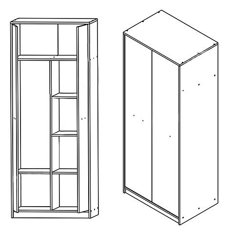 шафа містить два закритих відділення: одне відділення зі штангою для вішаків та полицею, друге відділення з полицями |