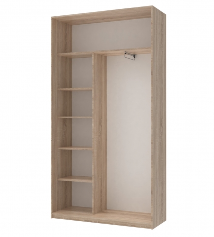 шафа містить два відділення - відділення з полицями та відділення з висувною штангою для вішалок, зверху розташована полиця антресоль |