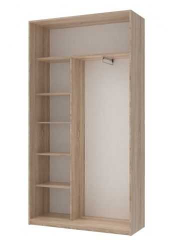 шафа містить два відділення - відділення з полицями та відділення з висувною штангою для вішалок, зверху розташована полиця антресоль |