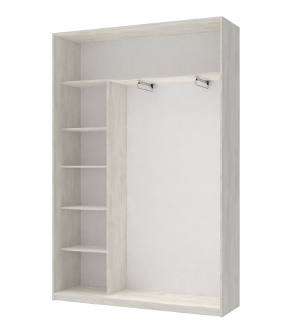 шафа містить два відділення - відділення з полицями та відділення з двома висувними штангами для вішалок, зверху розташована полиця антресоль |