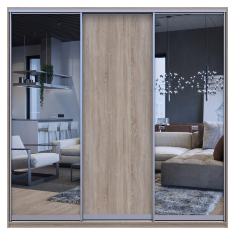 Опис Шафа-купе Сіті Лайт 225/60 дуб сонома 1 ДСП / 2 дзеркала Doros