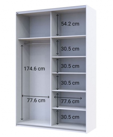 шафа містить два відділення: відділення з полицями та відділення зі штангою для вішалок, зверху полиці антресоль |