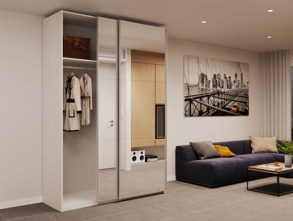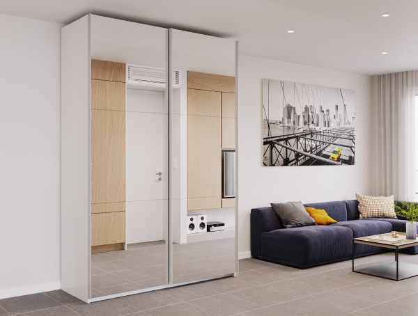 Шафа-купе G-Caiser Doros – це невід'ємна і функціональна складова сучасного інтер'єру спальні чи вітальні, гардеробної кімнати або передпокою, для створення «правильного планування» та зберігання речей. Перевагою шафи є два відділення: відділення з полицями та відділення зі штангою для вішалок, зверху полиці антресоль з німецькою розсувною системою Hettich та дзеркальні фасади Leal Glass в повний зріст. Шафа-купе G-Caiser Doros безсумнівно, стане модним, функціональним і практичним предметом меблів в зоні Вашого комфорту.