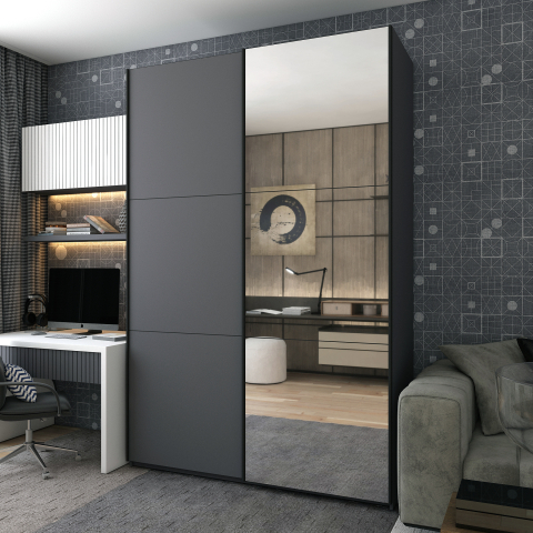 Опис Шафа-купе G-Caiser 160 графіт / графіт 1 ДСП / 1 дзеркало / 3 частини Doros