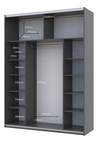Характеристики Шафа-купе G-Caiser 180 графіт / графіт / білий 1 ДСП / 1 скло / 3 частини Doros