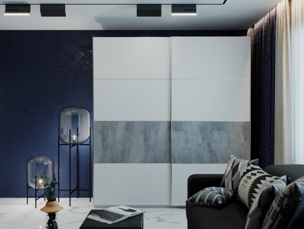 Опис Шафа-купе G-Caiser 220 графіт / білий / бетон 2 ДСП / 4 частини Doros