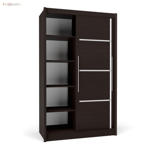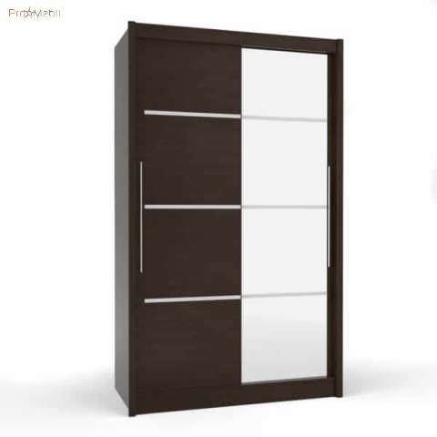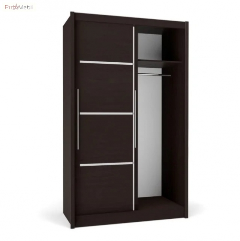 Ілона ВМВ - це колекція зручних і компактних шаф-купе, які підійдуть для облаштування практично будь-якої кімнати в будинку і стануть ідеальним місцем для зберігання одягу і речей всієї сім'ї. Шафа-купе складається з двох розсувних дверей, усередині ліворуч розташовано чотири полиці, праворуч – полиця і штанга для вішалок, завдяки чому Ви можете розмістити всі необхідні речі. Корпус і фасадні частини виготовляються з високоякісного ламінованого ДСП в насиченому відтінку «дуб шоколадний» із дзеркальними панелями. Перевагою шафи Ilona VMV є лаконічний стиль; класичний відтінок з яскраво вираженою деревною текстурою; потовщені стінки корпусу, що додають надійності; тонкі, довгасті ручки, а також проста і надійна розсувна система Fast. Шафа-купе, це не лише комфорт для життя, але і затишок у вашому будинку.