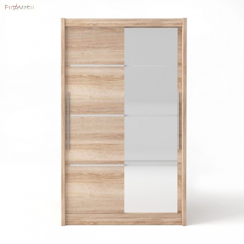 Ілона ВМВ - це колекція зручних і компактних шаф-купе, які підійдуть для облаштування практично будь-якої кімнати в будинку і стануть ідеальним місцем для зберігання одягу і речей всієї сім'ї. Шафа-купе складається з двох розсувних дверей, усередині ліворуч розташовано чотири полиці, праворуч – полиця і штанга для вішалок, завдяки чому Ви можете розмістити всі необхідні речі. Корпус і фасадні частини виготовляються з високоякісного ламінованого ДСП в теплому відтінку «дуб сонома», з виразним природним орнаментом у поєднанні з дзеркальними панелями. Перевагою шафи Ilona VMV є лаконічний стиль; класичний відтінок з яскраво вираженою деревною текстурою; потовщені стінки корпусу, що додають надійності; тонкі, довгасті ручки, а також проста і надійна розсувна система Fast. Шафа-купе, це не лише комфорт для життя, але і затишок у вашому будинку.