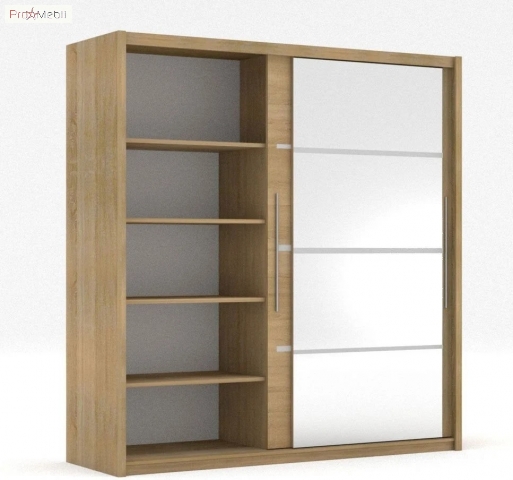 Ілона ВМВ - це колекція зручних і компактних шаф-купе, які підійдуть для облаштування практично будь-якої кімнати в будинку і стануть ідеальним місцем для зберігання одягу і речей всієї сім'ї. Шафа-купе складається з двох розсувних дверей, усередині ліворуч розташовано чотири полиці, праворуч – полиця і штанга для вішалок, завдяки чому Ви можете розмістити всі необхідні речі. Корпус і фасадні частини виготовляються з високоякісного ламінованого ДСП в теплому відтінку «дуб сонома», з виразним природним орнаментом у поєднанні з дзеркальними панелями. Перевагою шафи Ilona VMV є лаконічний стиль; класичний відтінок з яскраво вираженою деревною текстурою; потовщені стінки корпусу, що додають надійності; тонкі, довгасті ручки, а також проста і надійна розсувна система Fast. Шафа-купе, це не лише комфорт для життя, але і затишок у вашому будинку.