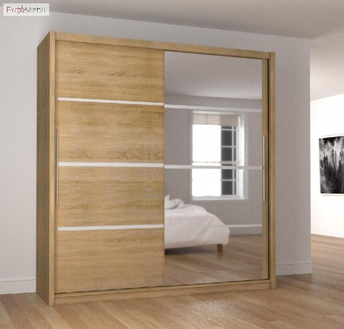 Ілона ВМВ - це колекція зручних і компактних шаф-купе, які підійдуть для облаштування практично будь-якої кімнати в будинку і стануть ідеальним місцем для зберігання одягу і речей всієї сім'ї. Шафа-купе складається з двох розсувних дверей, усередині ліворуч розташовано чотири полиці, праворуч – полиця і штанга для вішалок, завдяки чому Ви можете розмістити всі необхідні речі. Корпус і фасадні частини виготовляються з високоякісного ламінованого ДСП в теплому відтінку «дуб сонома», з виразним природним орнаментом у поєднанні з дзеркальними панелями. Перевагою шафи Ilona VMV є лаконічний стиль; класичний відтінок з яскраво вираженою деревною текстурою; потовщені стінки корпусу, що додають надійності; тонкі, довгасті ручки, а також проста і надійна розсувна система Fast. Шафа-купе, це не лише комфорт для життя, але і затишок у вашому будинку.