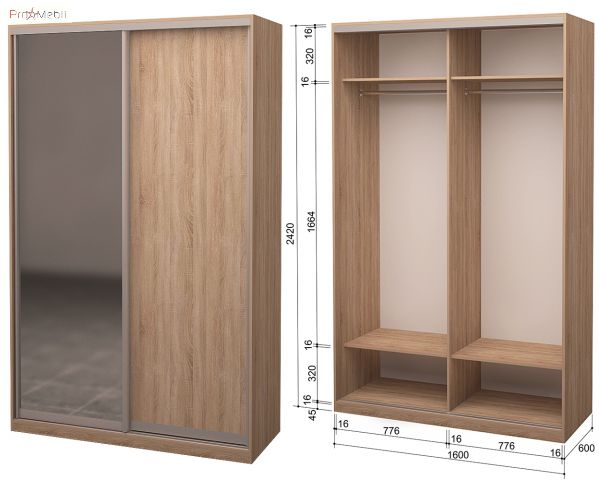 Шафа-купе Roko - це надійна модель серед шаф, яка гармонійно впишеться в Ваш інтер'єр і створить затишок завдяки великій гамі кольорів, різних розмірів і міцних матеріалів. Шафа-купе складається з двох розсувних дверей одна з ДСП, інша дзеркальна. Усередині справа є штанга для вішалок і полиця над штангою і внизу ще одна полиця, з лівого боку так само все розташовано, завдяки чому Ви можете розмістити всі необхідні речі. Шафа-купе Roko представлена в широкому діапазоні відтінків: дуб венге, дуб Сонома, дуб молочний, що дозволяє меблям легко вписатися в різні дизайни, наповнивши квартиру шармом і натхненням.
