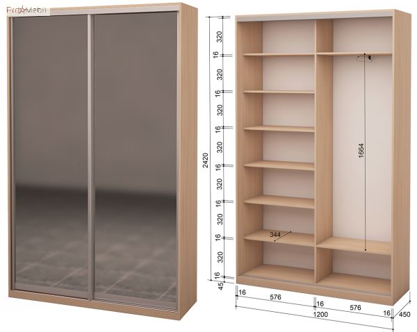 Купить шкаф-купе Roko 2.62.242.45-1 2 зеркала 120 недорого в Украине, Киеве, Днепре