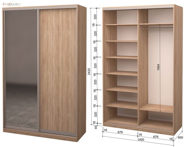 Шафа-купе Roko - відмінний вибір серед шаф, який гармонійно впишеться в Ваш інтер'єр і створить затишок завдяки великій гамі кольорів, різних розмірів і міцних матеріалів. Шафа-купе складається з двох розсувних дверей з ДСП і дзеркала. Усередині справа є штанга для вішалок і полиця над штангою і внизу ще одна полиця, а зліва знаходиться 6 полиць, завдяки чому Ви можете розмістити всі необхідні речі. Шафа-купе Roko представлена в широкому діапазоні відтінків: дуб венге, дуб Сонома, дуб молочний, німфея альба, сірий графіт, що дозволяє меблям легко вписатися в різні дизайни, наповнивши квартиру шармом і натхненням.