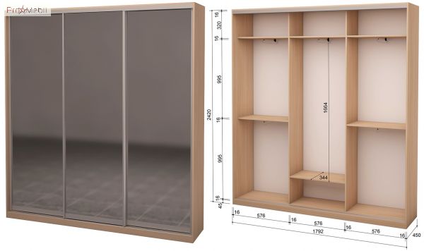 Купить шкаф-купе Roko 3.222.242.45-3 3 зеркала 179.2 недорого в Украине, Киеве, Днепре