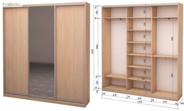 Купить шкаф-купе Roko 3.262.242.45-3 2 ДСП зеркало 179.2 недорого в Украине, Киеве, Днепре