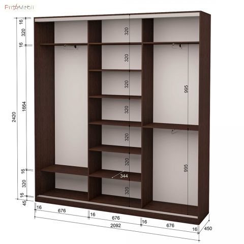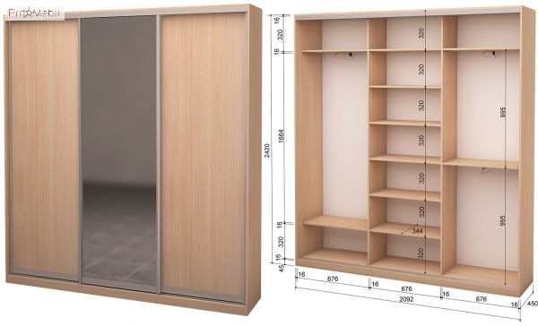 Купить шкаф-купе Roko 3.262.242.45-3 2 ДСП зеркало 209.2 недорого в Украине, Киеве, Днепре