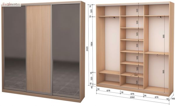 Купить шкаф-купе Roko 3.262.242.45-3 ДСП 2 зеркала 209.2 недорого в Украине, Киеве, Днепре
